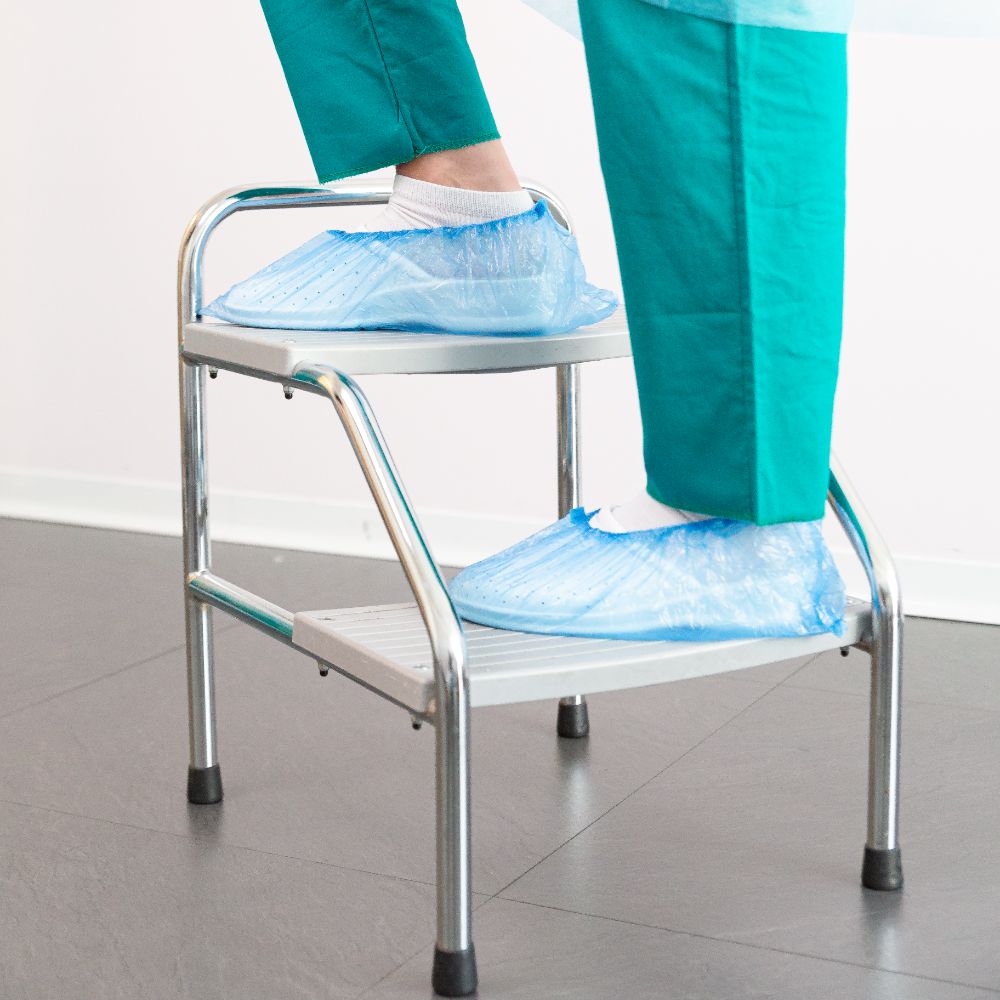 Il copriscarpe è una barriera meccanica contro materiale e sostanze, serve per riparare i piedi da polvere, spray e altro materiale che viene utilizzato durante un'attività medica.
